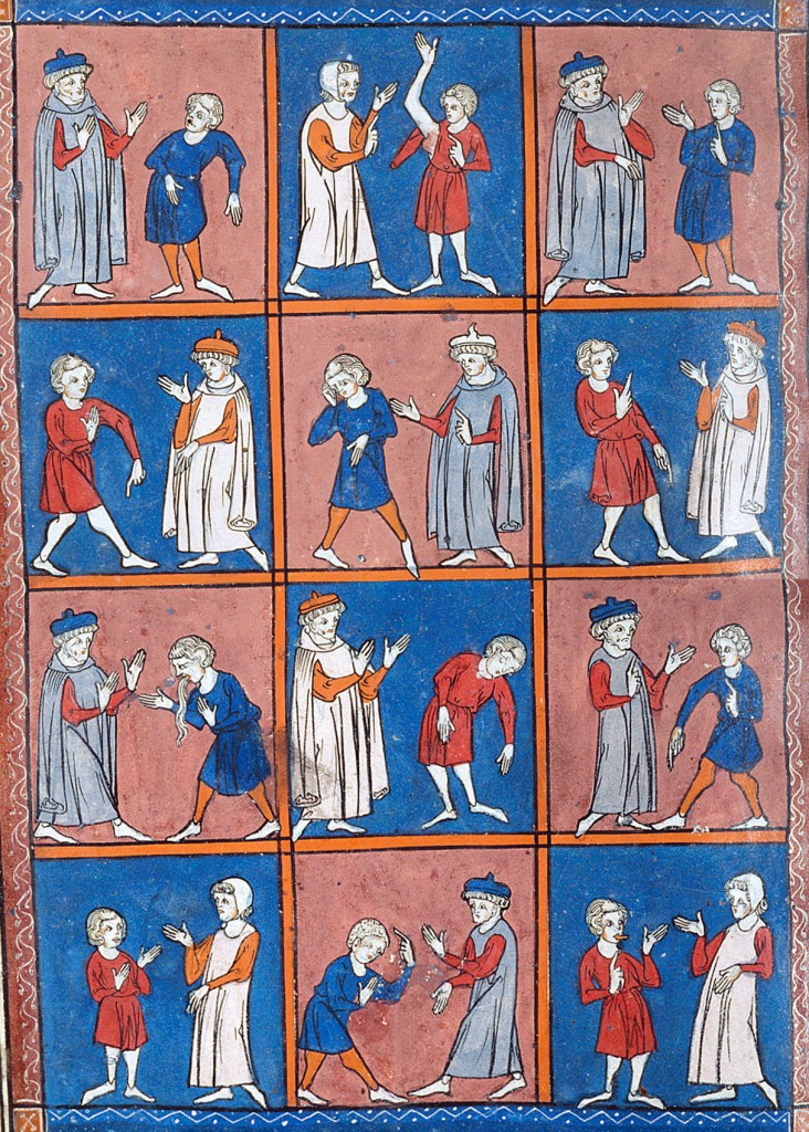 "Consulti medici", miniatura tratta dal ‘Trattato di chirurgia’ di Rogerio Frugardi (inizi del XIV secolo), British Library, Londra.
