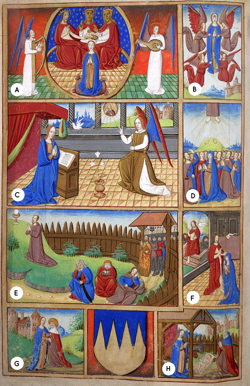 Scene della vita di Maria, miniature tratte da Libro d'Ore (1501-1510), British Library, Londra. Le scene sono in ordine sparso: sai metterle nella sequenza giusta? :)