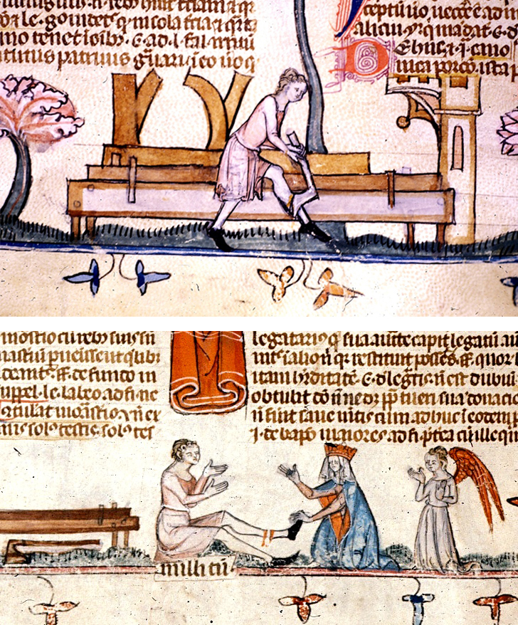 Miniature tratte dai 'Smithfield Decretals' (fine XIII secolo, inizi XIV secolo), British Library, Londra.