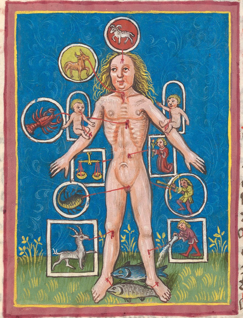"Uomo zodiacale", illustrazione tratta dal 'Codex Schürstab' (Norimberga, XV secolo), Zentralbibliothek, Zurigo.