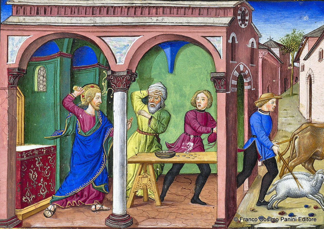 I sacerdoti e gli scribi si riuniscono per decidere come combattere Cristo, che temono perché è accompagnato da grande folla.