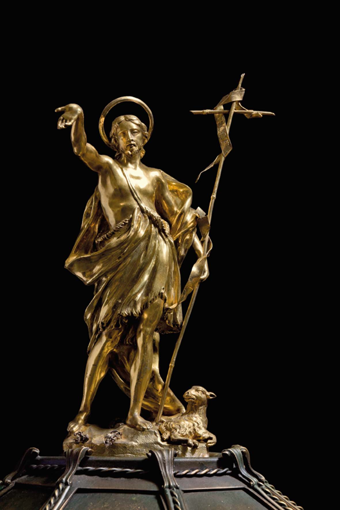 Genova, Cattedrale di San Lorenzo, Battistero di San Giovanni: San Giovanni Battista, statuetta in argento dorato sulla cuspide del fonte battesimale.