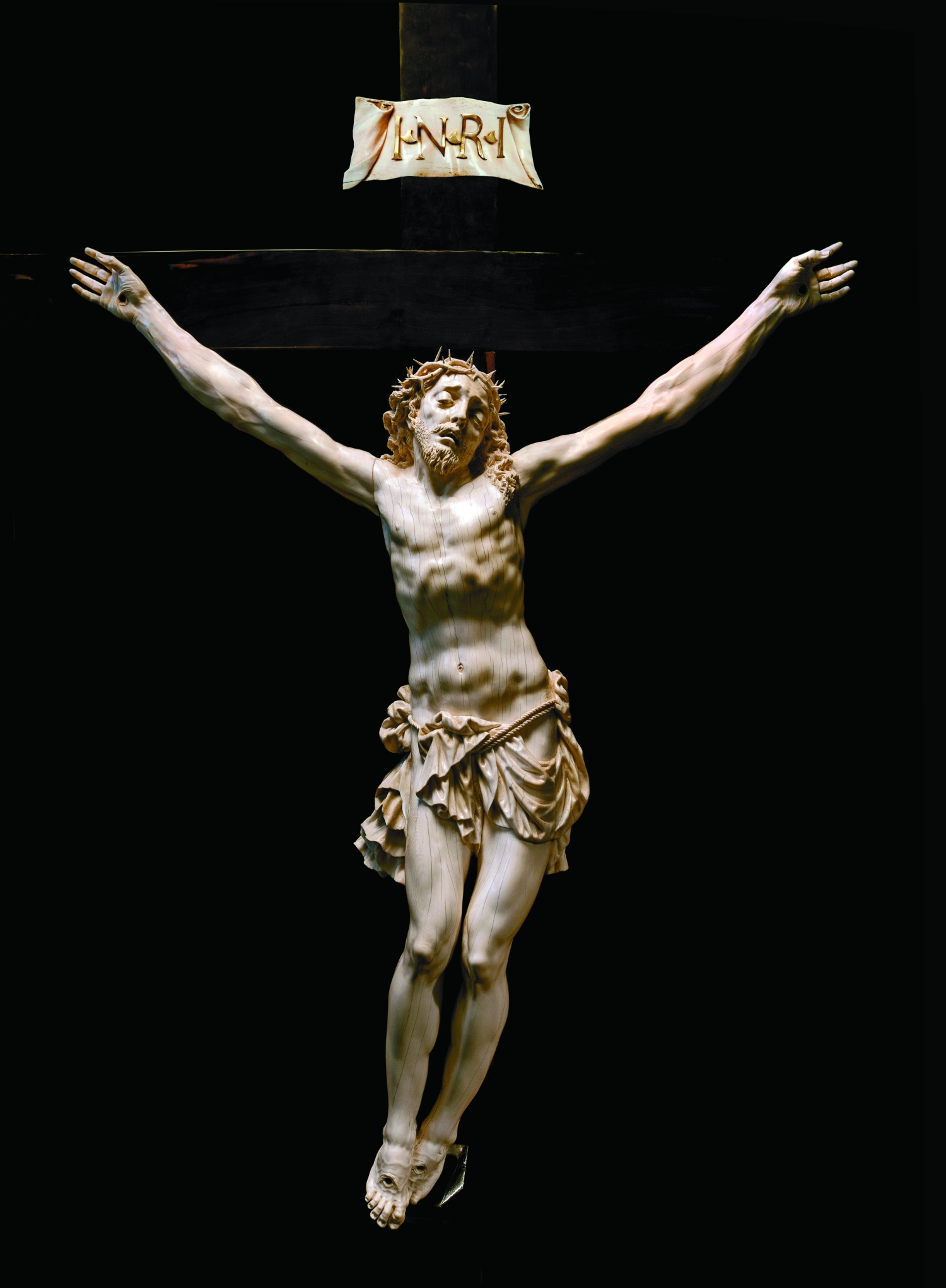 Domenico Bissoni (Bissone, ante 1574 – Genova, 1637) Crocifisso Avorio con croce d’ebano, chiodi e lettere di rame dorato Collezione privata