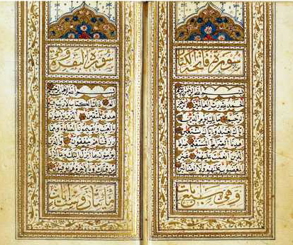 Uno dei Corani in mostra alla Biblioteca Universitaria di Bologna.