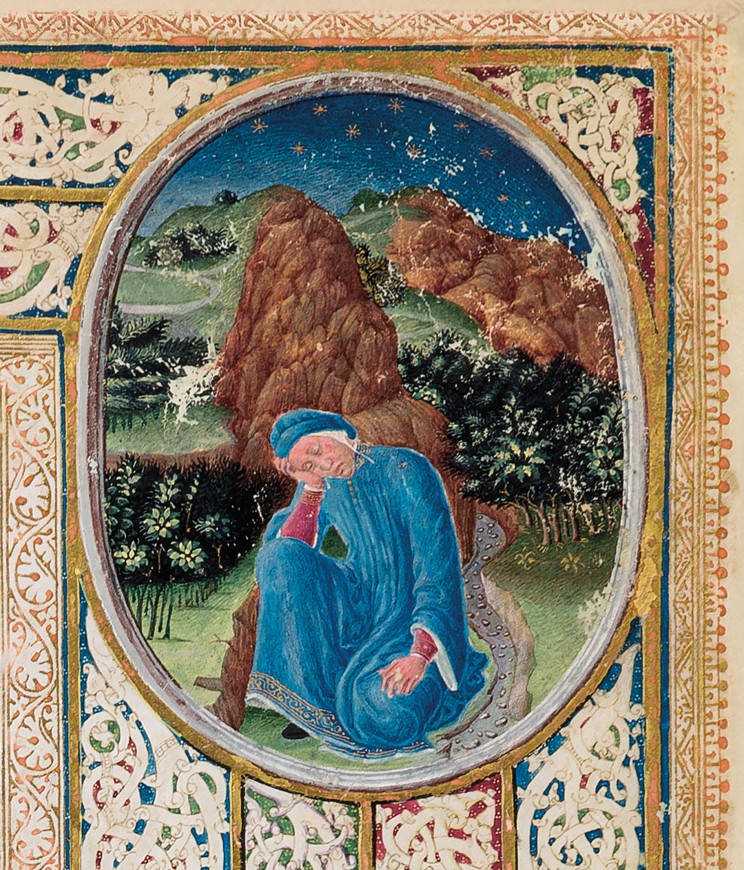 Miniatura dalla Divina Commedia di Dante Alighieri, Ms. Urb. lat. 365, c. 1r, 1478-1482, Biblioteca Apostolica Vaticana.