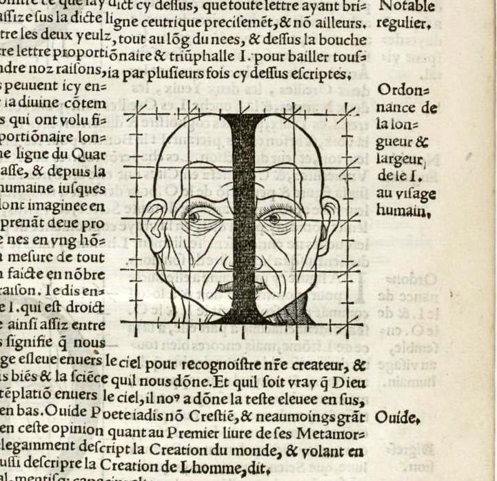 Lettera "I", particolare tratto dal volume 'Le champ fleury' di Geoffroy Tory (1529), Bibliothèque nationale de France, Parigi.