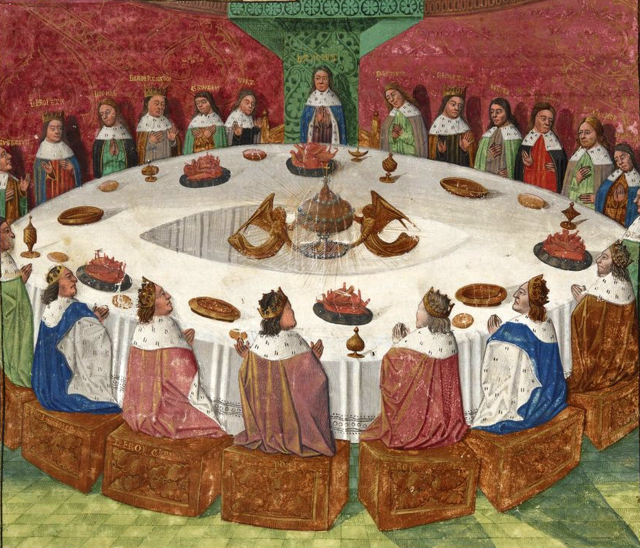 "L'apparizione del Santo Graal ai cavalieri della Tavola Rotonda", miniatura tratta da 'Messire Lancelot du Lac' (1470), Bibliothèque nationale de France.