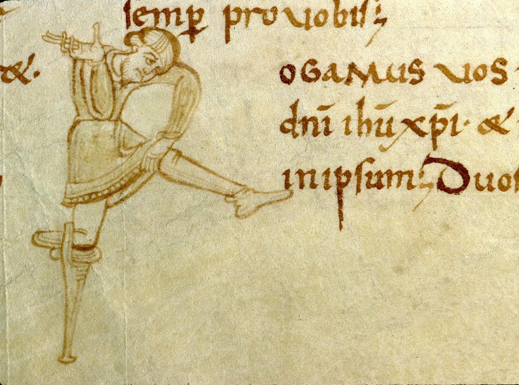 Iniziale "R" (Rogamus) composta dalla figura di un uomo con gamba amputata, illustrazione tratta dal 'Comment. in Epistulas Pauli' (Anjou, seconda metà dell'XI secolo), Bibliothèque municipale, Angers.