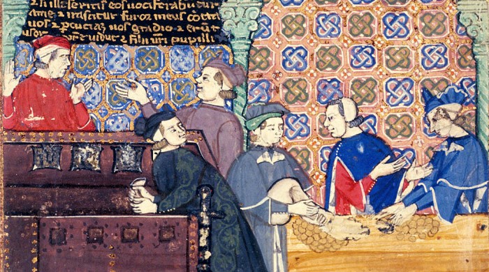 "L'avarizia. Scena ambientata nel Banco di San Giorgio di Genova", miniatura tratta dal…