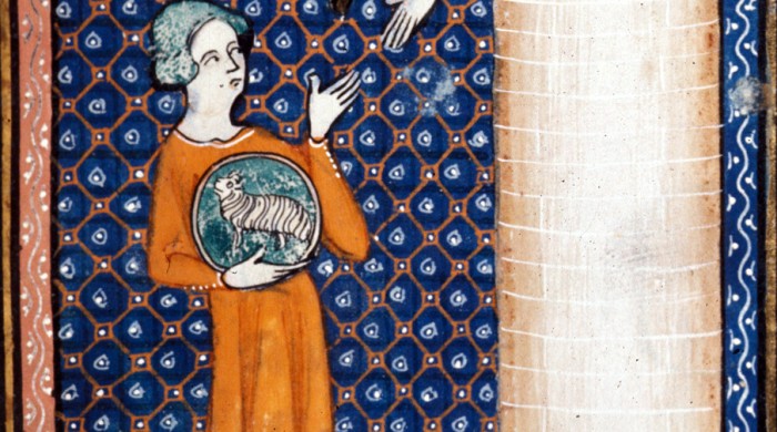 "La personificazione dell'Umiltà (con l'agnello) e il Re Acazia, simbolo di Orgoglio, che…