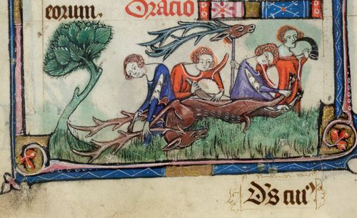 Illumination from the manuscript “The Taymouth Hours”, ms. Hunter 231, 14th century, British Library, London.