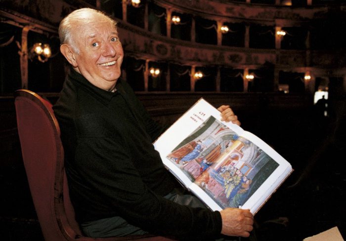 Dario Fo al Teatro Storchi di Modena alla presentazione de "La vera storia di Ravenna", 1999[/caption]