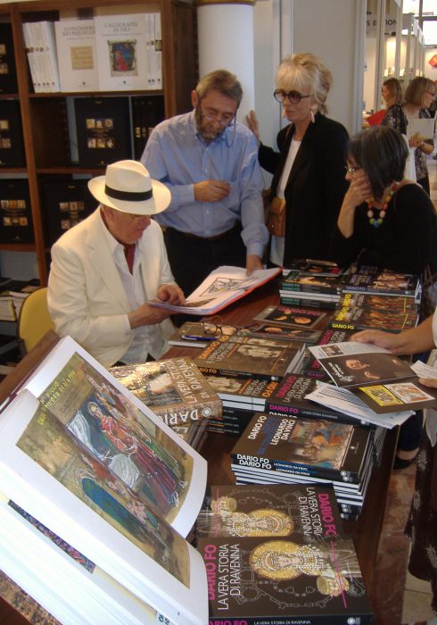 Dario Fo allo stand Panini di Artelibro, 2007[/caption]
