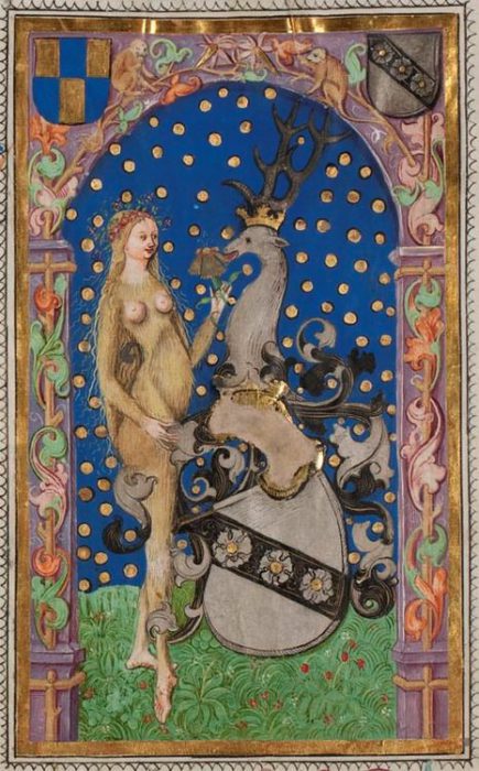 Illumination from the manuscript "Book of freshmen of the rectorship of the University of Basel", ms. AN II 3, c. 90r, 15th century, Basel University Library, Switzerland.