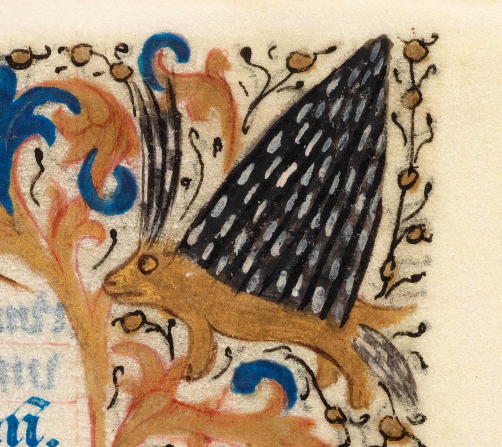 "Istrice", miniatura tratta da Libro d’Ore all’uso di Roma (1450-60), Collezione privata, Svizzera.