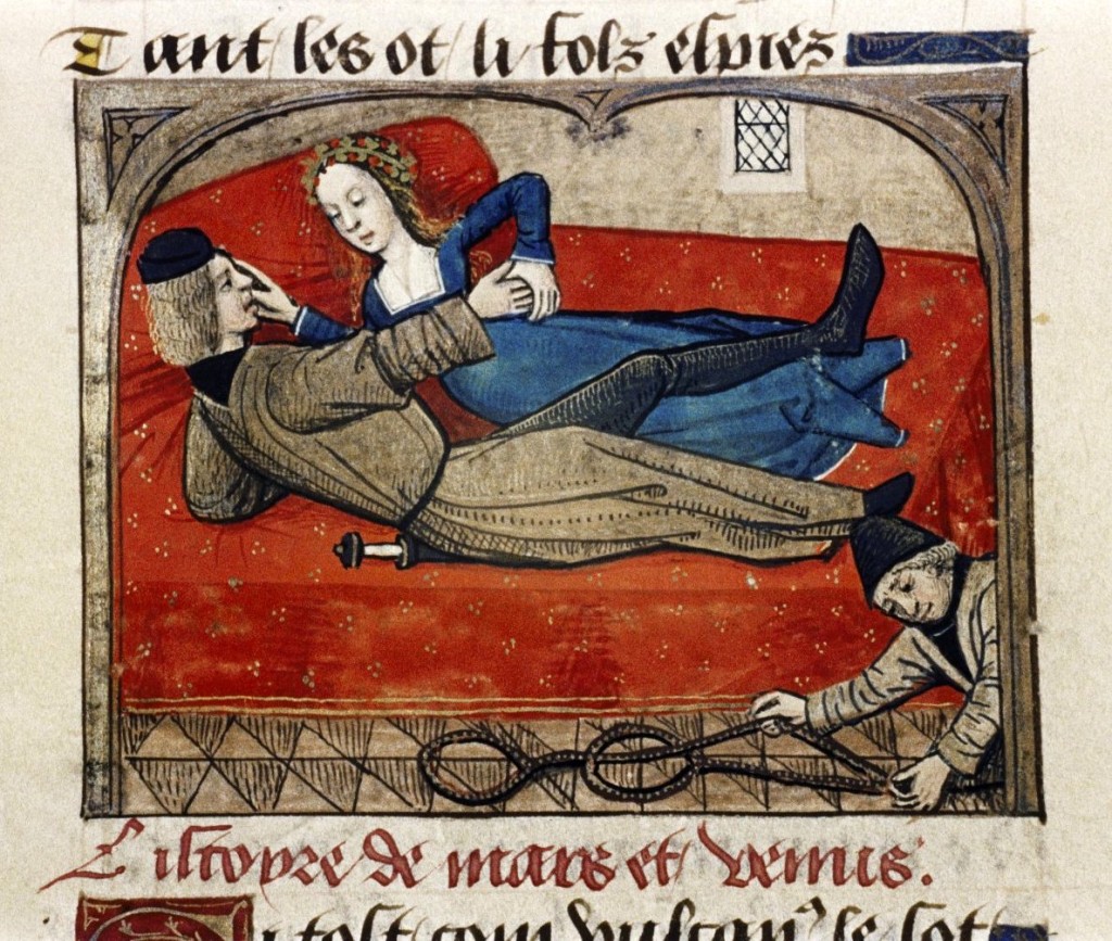 "Marte e Venere sorpresi da Vulcano", miniatura tratta da 'Le roman de la rose' (fine XV secolo), Bodleian Library, Oxford.