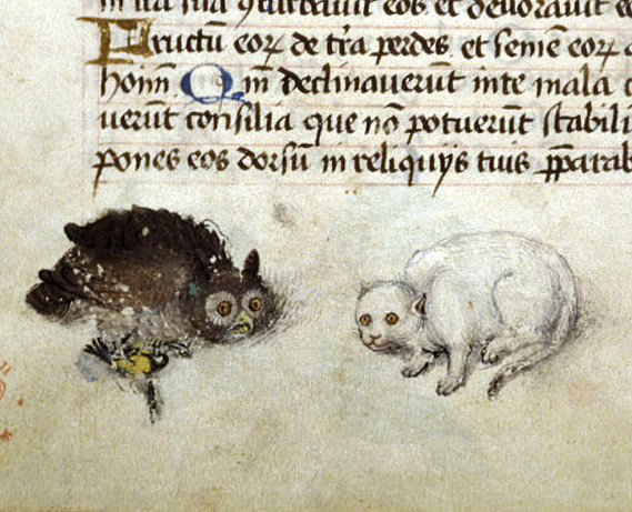 Gufo contro gatto – Libro d’Ore (1475-1485 circa), British Library, Londra