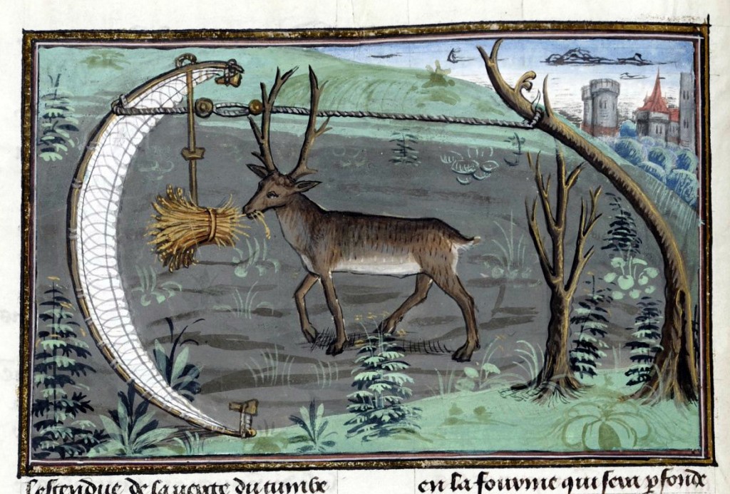 Trappola per cervo – Les Livres du roy Modus et de la royne Ratio ( 1455), Bibliothèque royale de Belgique, Bruxelles