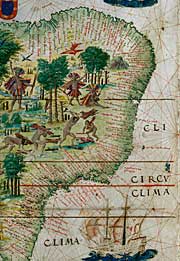 Un particolare dell’Atlante Miller della BnF raffigurante le coste del Brasile.