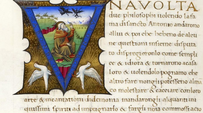 Iniziale figurata "U" ("Una volta due filosofi") tratta da 'Vite di santi padri'…