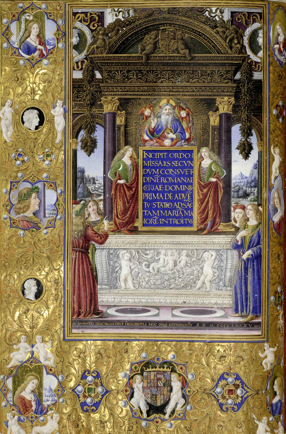 Pagina tratta dal Messale di Mattia Corvino (Firenze, 1485-1487), Bibliothèque royale de Belgique, Bruxelles.