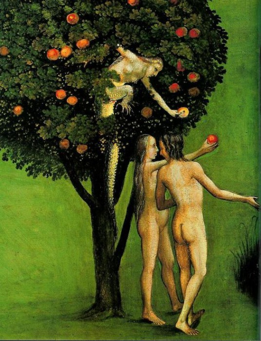 DETTAGLIO, Episodio del frutto proibito e della tentazione del serpente a Eva.