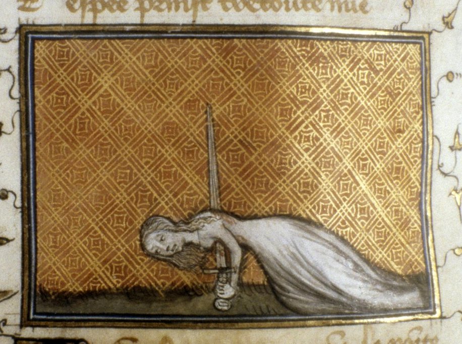 In realtà si tratta del "Suicidio di Didone", miniatura tratta dal 'Roman de la Rose' (1390 circa), Bodleian Library, Oxford.