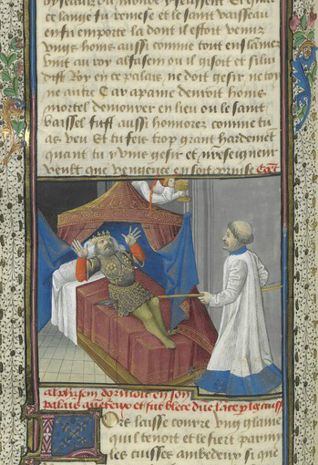 Miniatura tratta da “Lancelot en prose” (XV secolo), c. 113v, ms. Français 113, BnF, Parigi.