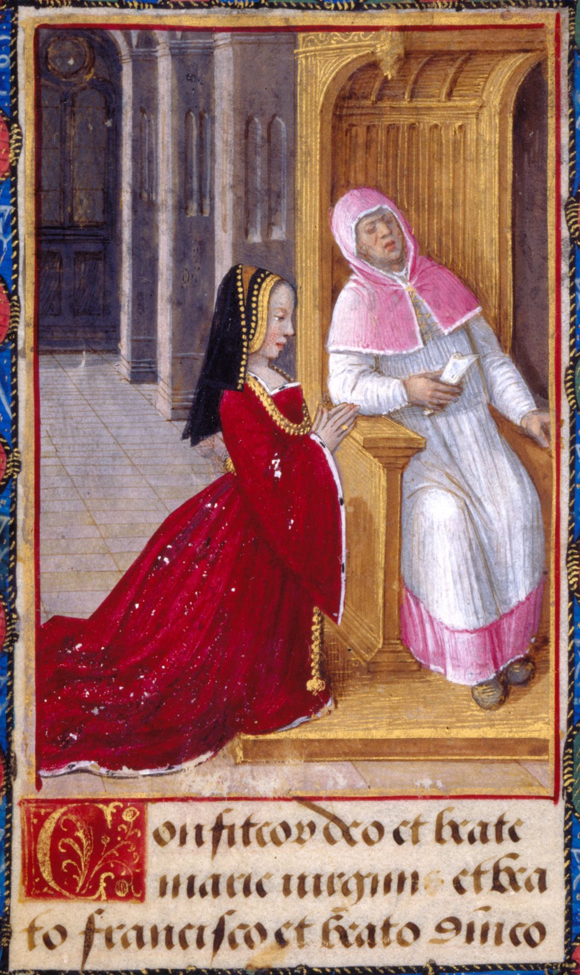 Anne de Bretagne at Confession – Prayer Book of Anne de Bretagne – Illuminated by Jean Poyer – France, Tours, ca. 1492–95 – http://www.themorgan.org/collections/collections.asp?id=95