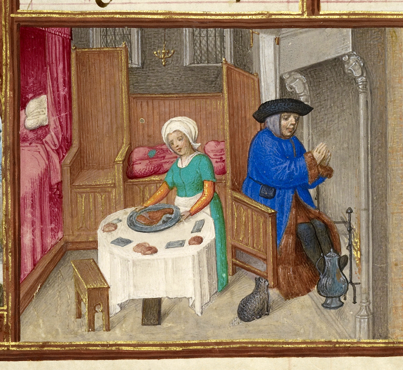 "Scena domestica", miniatura tratta dalle 'Ore Spinola' (1510-1520), J. Paul Getty Museum, Los Angeles.