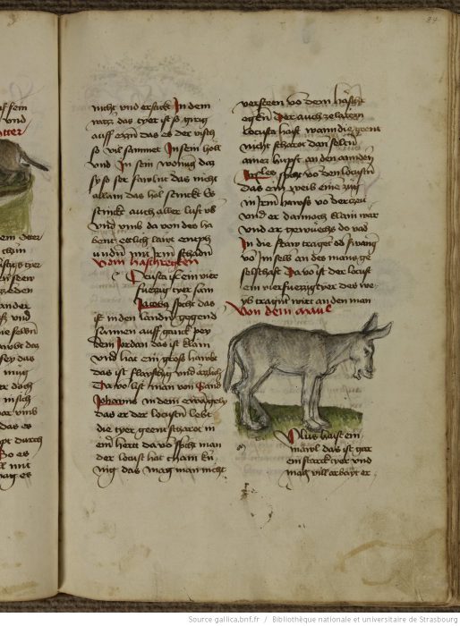 btv1b102246243 (1) Miniatura tratta dal manoscritto "Buch der Natur", ms. 2.264, 84r, XV secolo Bibliothèque nationale et universitaire de Strasbourg.   Illumination from the manuscript "Buch der Natur", ms. 2.264, c. 84r, 15th century, Bibliothèque nationale et universitaire de Strasbourg.
