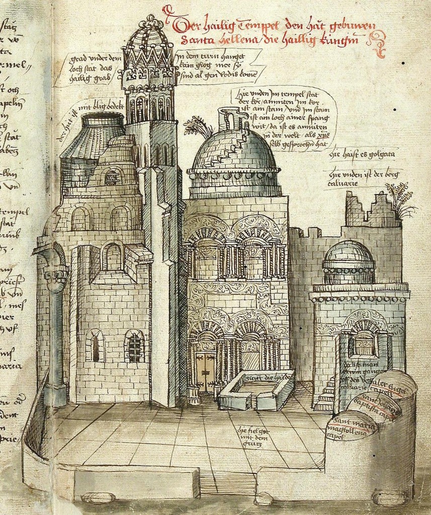 "La basilica del Santo Sepolcro a Gerusalemme", illustrazione tratta dall'opera 'Beschreibung der Reise von Konstanz nach Jerusalem' di Konrad von Grünenberg (1487), Landesbibliothek, Baden.
