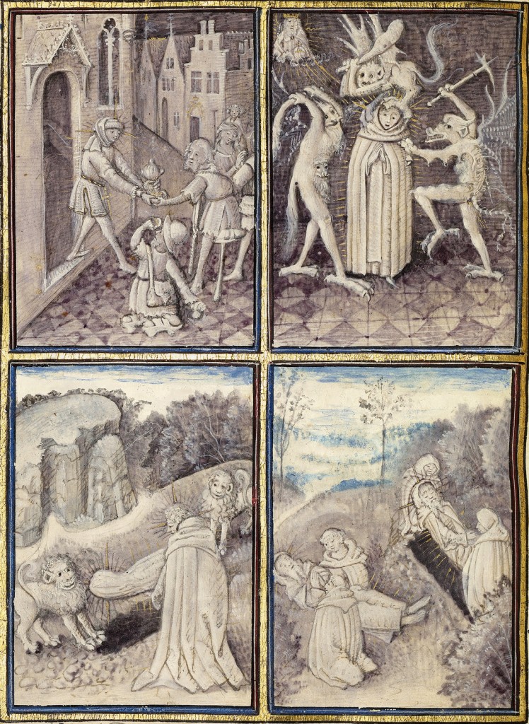 "Scene della vita di sant'Antonio", miniature tratte dall'opera 'Ritrovamento e traslazione del corpo di sant'Antonio' (Fiandre, 1465-1470), Getty Museum, Los Angeles.