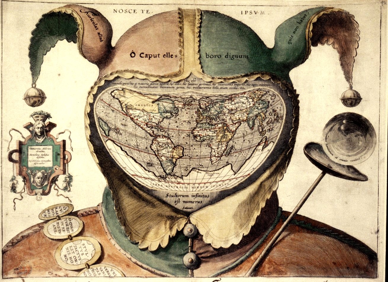 Giullare con mappa del mondo al posto del volto (1590 circa), Bodleian Library, Oxford.