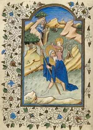 “St. Christopher Carrying the Christ Child”, illumination from the “Book of Hours”, ms. M 46, c. 23v, 15th century, Morgan Library, New York.
