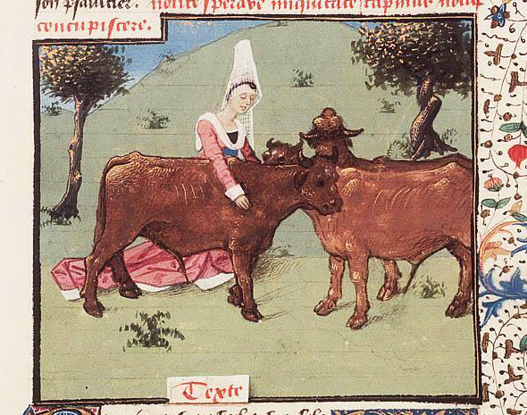 Detail of a bas-de-page scene of an assisted Valentine before a judge, with…