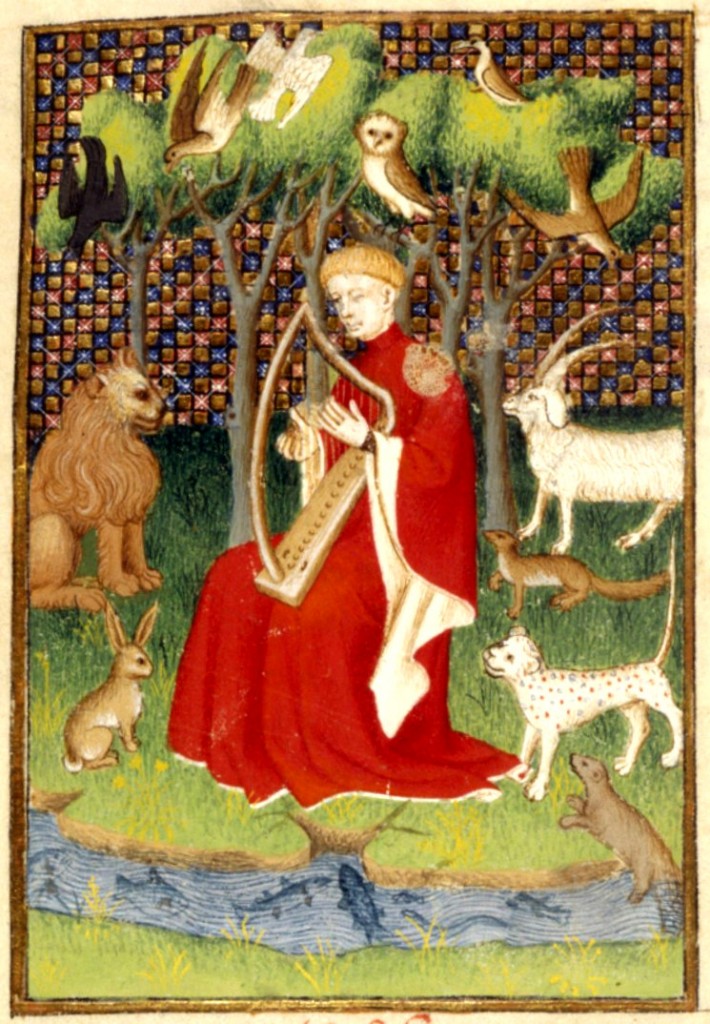 "Orfeo incanta gli animali con il suono della sua lira", miniatura tratta dal 'Book of the Queen' (1410-1414 circa), British Library, Londra.