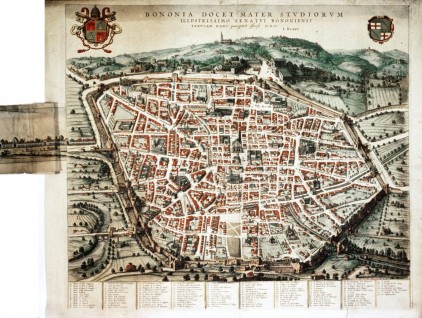 "Bononia Docet Mater Studiorum", mappa realizzata da Joan Blaeu (1663), Bodleian Library, Oxford.