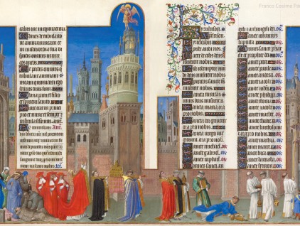 "La Processione di san Gregorio", miniatura tratta dalle 'Très Riches Heures del Duca di Berry' (XV secolo), Musée Condé, Chantilly. La processione, che si sviluppa all'esterno delle mura della città di Roma, muove dalla porta Flaminia…