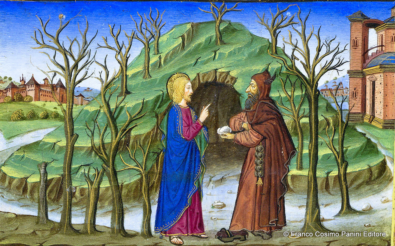 Dopo quaranta giorni di digiuno lo invita a trasformare le pietre in pane per provare di essere il Figlio di Dio...
