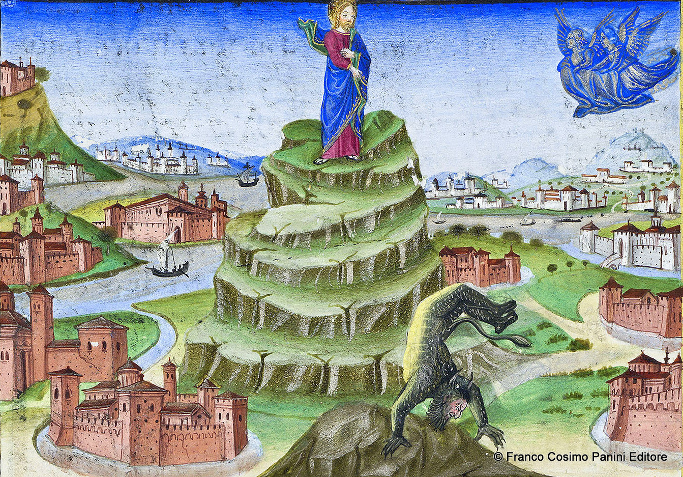 Quindi in vetta a una montagna gli offre i regni della terra, a condizione di essere adorato come Dio...