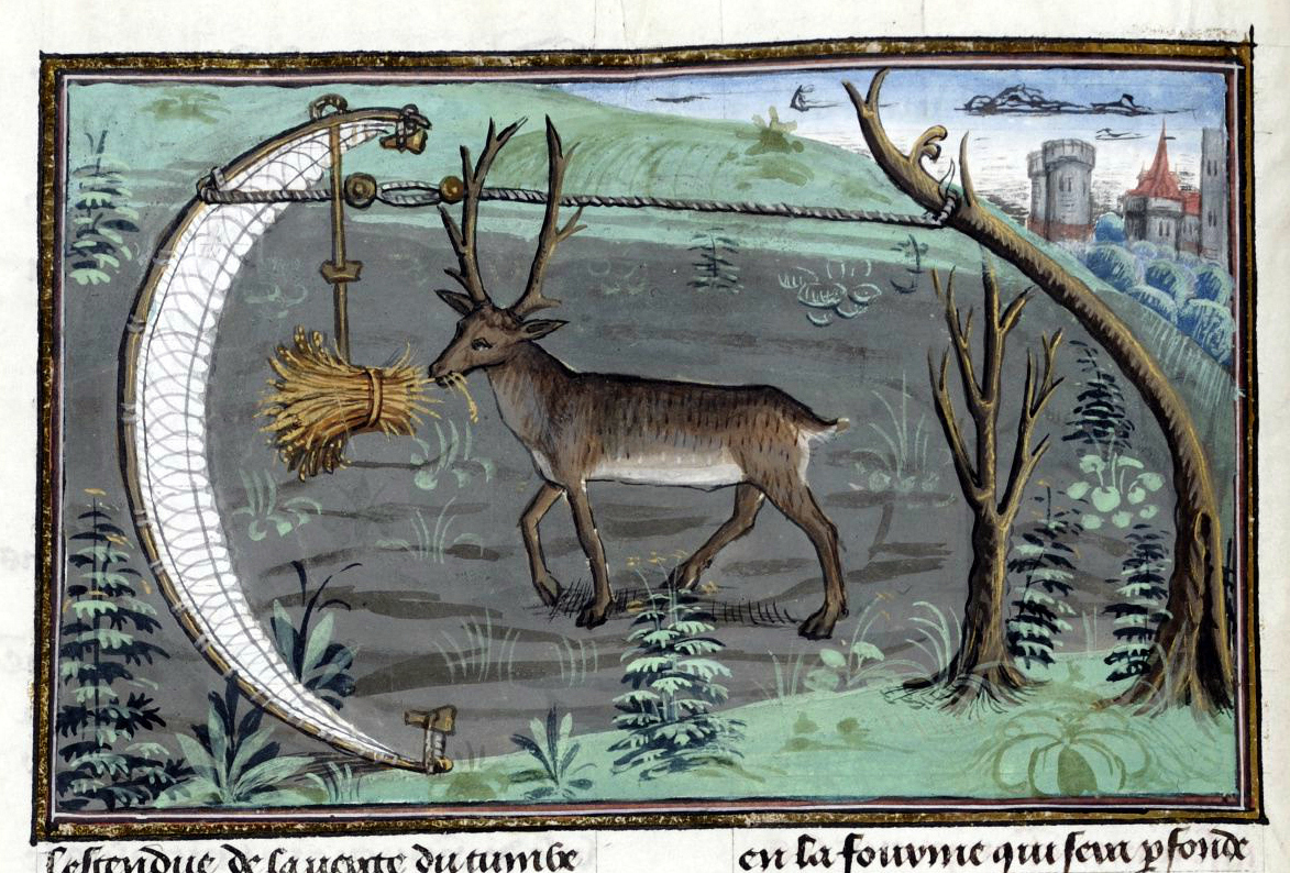 Trappola per cervo – Les Livres du roy Modus et de la royne Ratio (ms 10218-19 ) – 1455 – Bibliothèque royale de Belgique Bruxelles