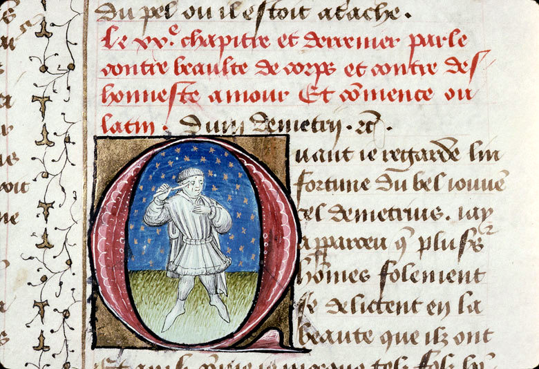 Iniziale "F" tratta da 'Recueil de Chants Religieux et Profanes’ (1542), Bibliotheque Municipale, Cambrai.