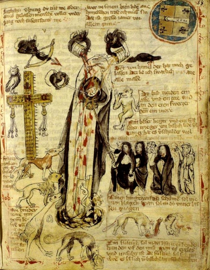 "I dolori di Enrico Suso", miniatura tratta dall'opera 'Vie du bienheureux Henri Suso' (Germania, XV secolo), Bibliothèque nationale et universitaire, Strasburgo.