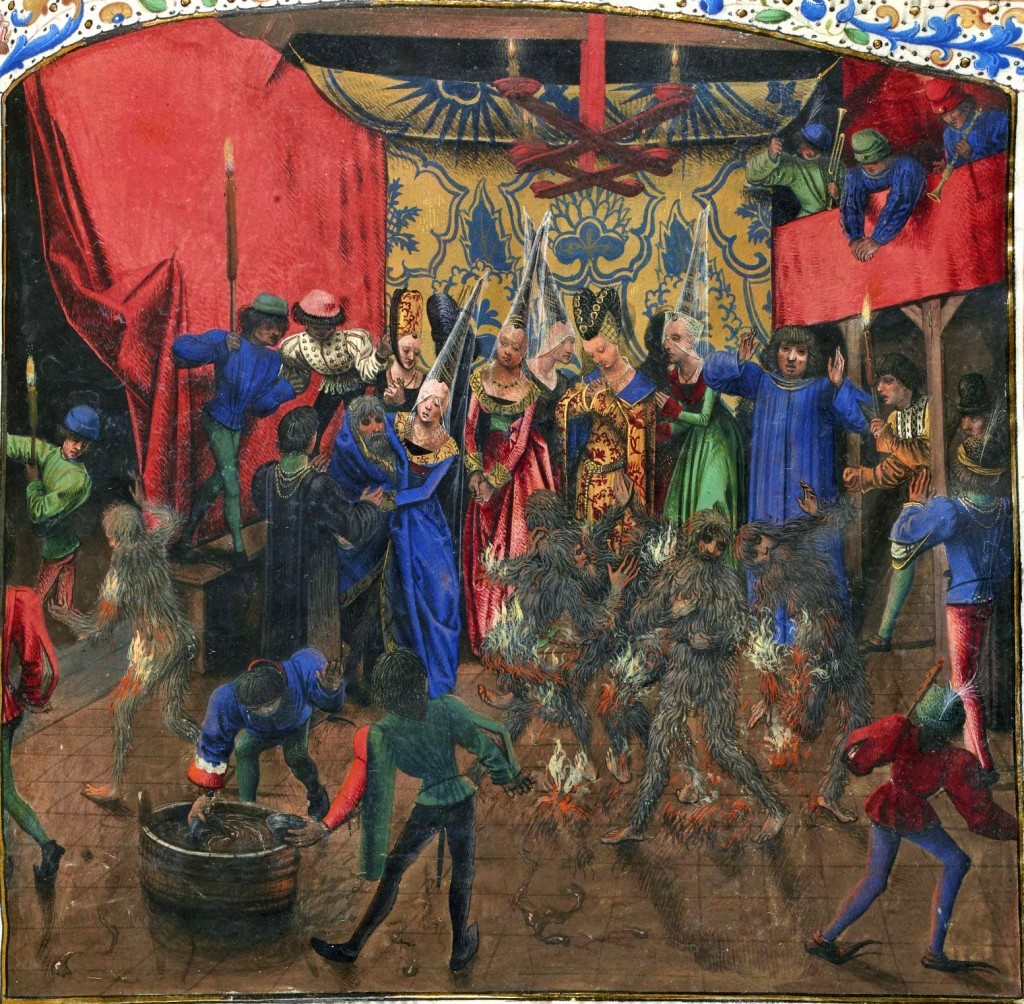 "Il Ballo degli Ardenti", miniatura tratta dalle Cronache di Jean Froissart (Bruges, 1470 circa), Bibliothèque nationale de France, Parigi.