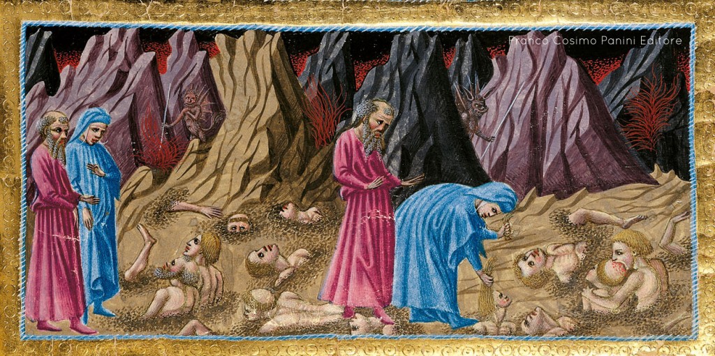 Miniatura tratta dalla ‘Divina Commedia di Alfonso d’Aragona’ (Franco Cosimo Panini Editore)