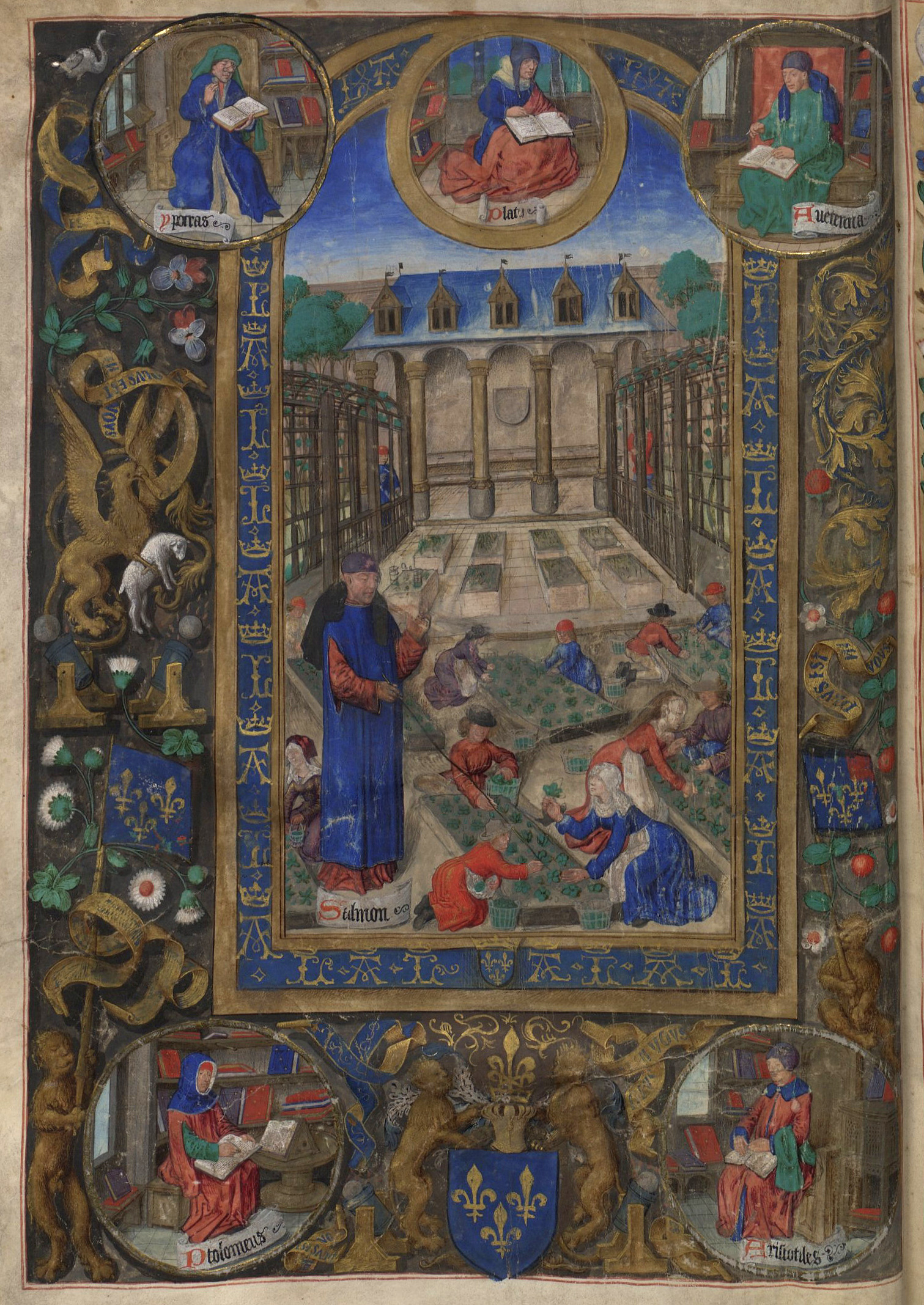 Pagina miniata tratta dal 'Livre des symples medichinos, autrement dit Arboriste' (Francia, XV secolo), Bibliothèque nationale de France, Parigi.
