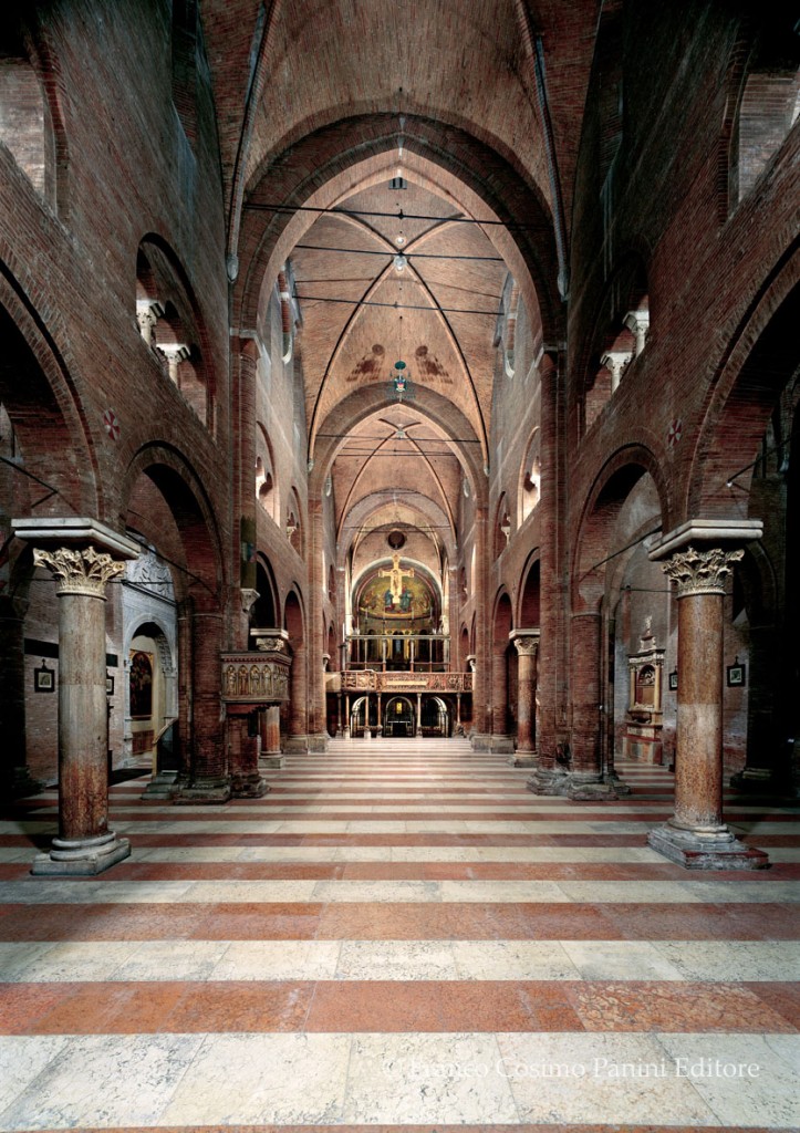 L’interno, raccolto e austero, ospita a sua volta capolavori come il Presepe in terracotta di Antonio Begarelli, il pulpito di Enrico da Campione e il pontile realizzato dalle stesse maestranze campionesi che lavorarono anche alla facciata, fino a scendere nella cripta che custodisce le reliquie di san Geminiano e il gruppo scultoreo della Madonna della Pappa, uno dei vertici della scultura in terracotta di Guido Mazzoni.