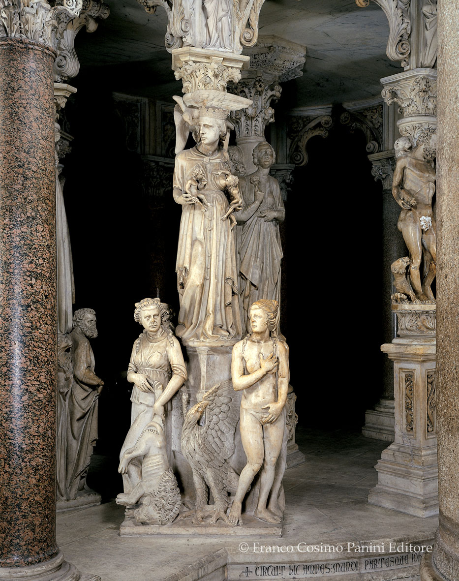 Colonna con Ecclesia, Fortezza e Prudenza – Pergamo di Giovanni Pisano