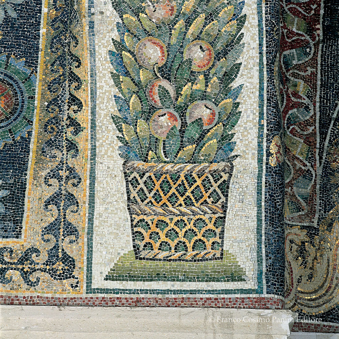Canestro con festone di foglie e frutti